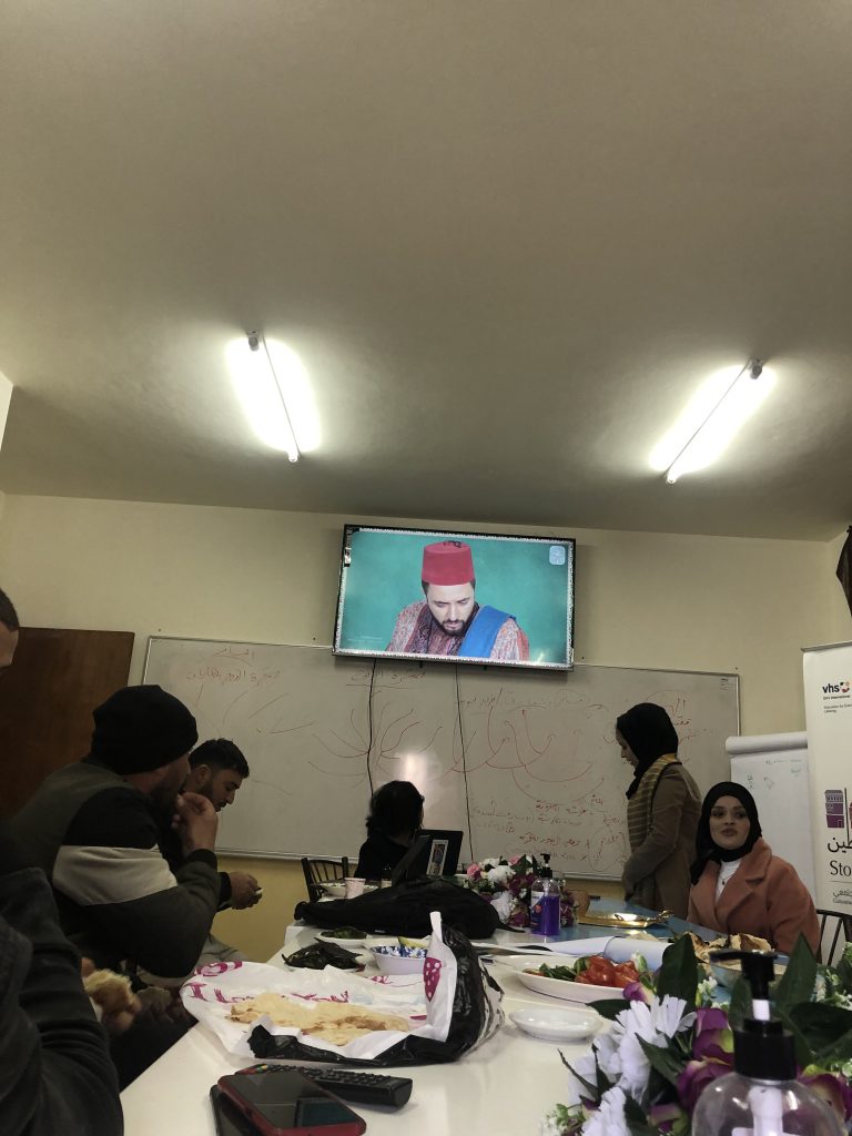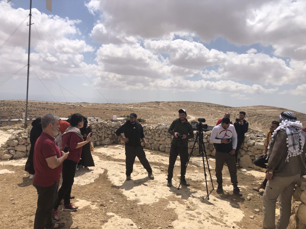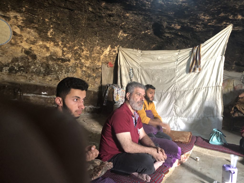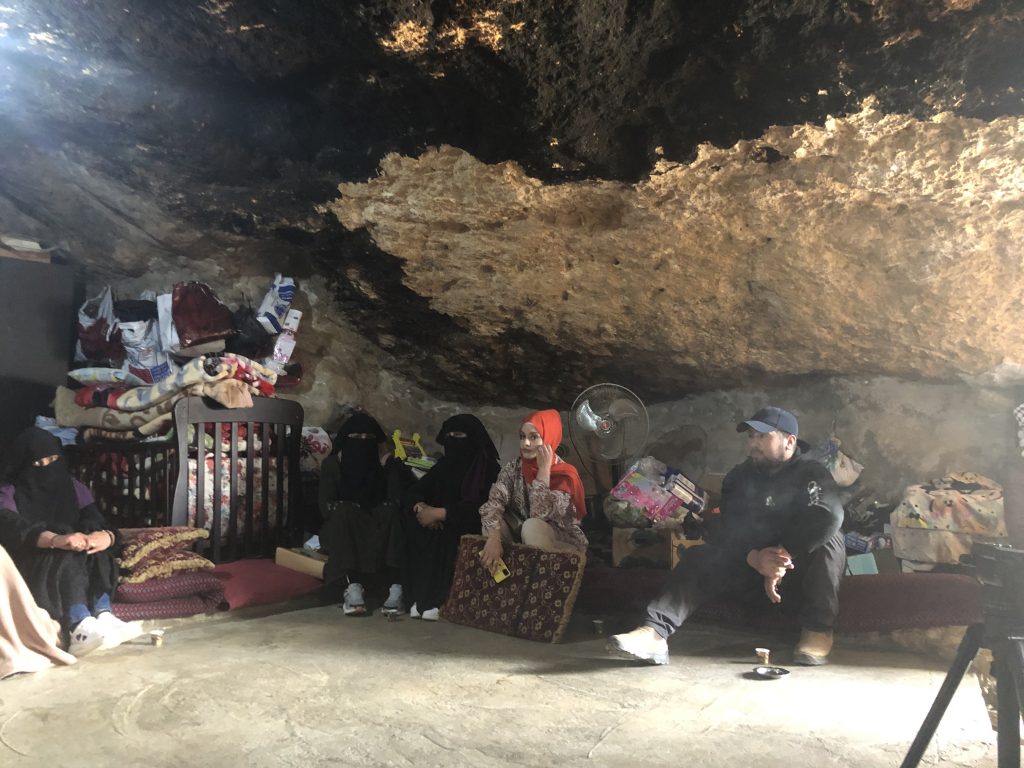 صورة داخل كهف في خِربة طوبا يظهر فيها جزء من المتطوعين الشباب ضمن التدريب على اجراء المقابلات ضمن مشروع حدوتة خِرب المسافر. خربة طوبا تقع إلى الشرق من مسافر يطا و محاطة بالمستوطنات و تتعرض باستمرار الى اعتداءات من المستوطنين و