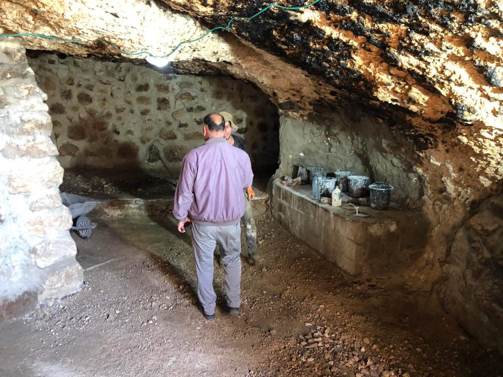 صورة تظهر اثناء عملية ترميم الكهف في مسافر يطا ضمن مشروع حدوتة خِرب المسافر